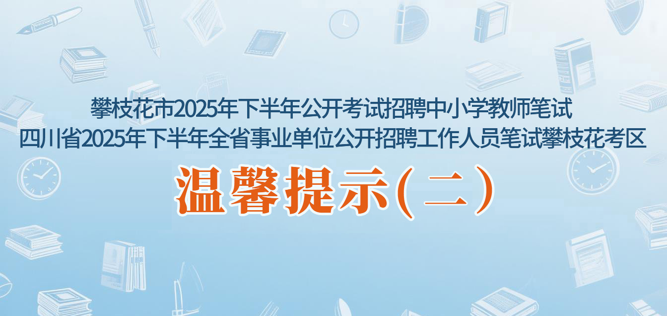 攀枝花市2025年下半年公開考試招聘中小學(xué)教師筆試 四川省2025年下半年全省事業(yè)單位公開招聘工作人員筆試攀枝花考區(qū)考前溫馨提示(一)2025-11-07
